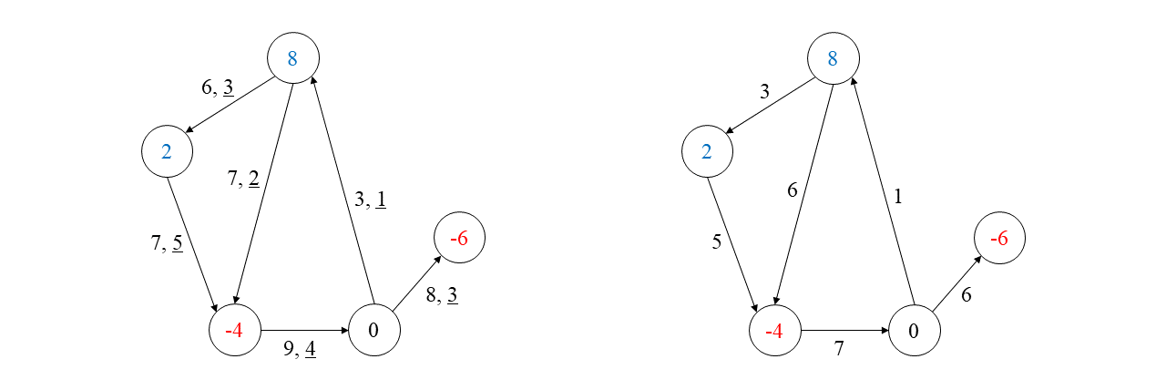 - 각 간선 \(e \in E\)에 대해, \( c'(e) := c(e) - \ell(e) \)